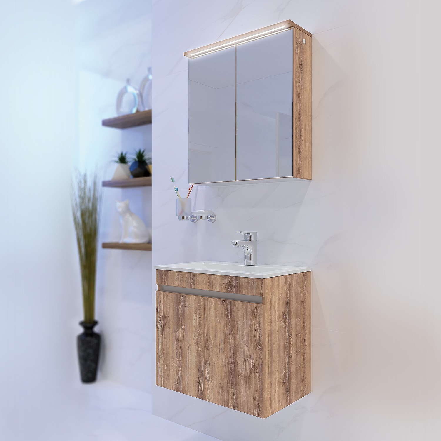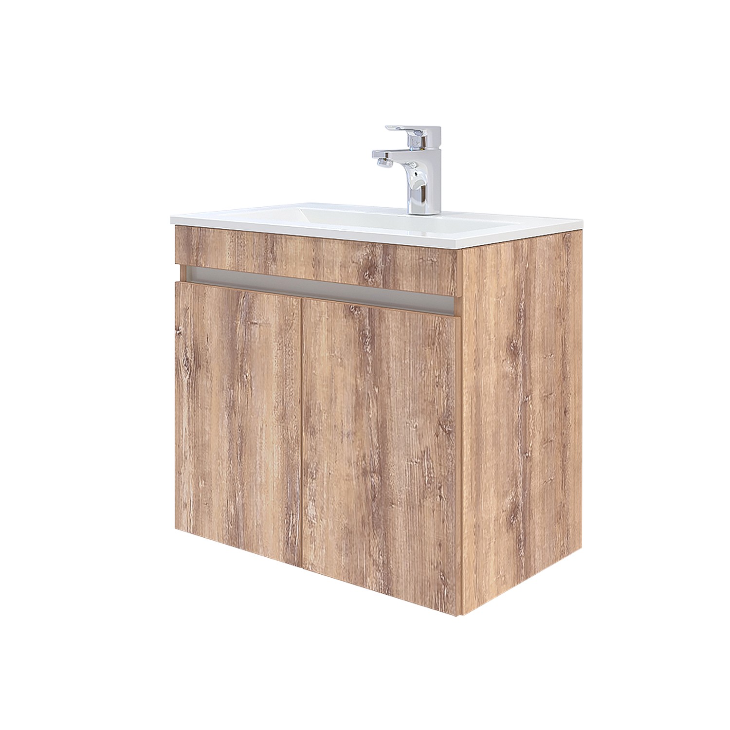Стилен и практичен водоустойчив шкаф в модерен дървесен цвят с две вратички с плавно прибиране!