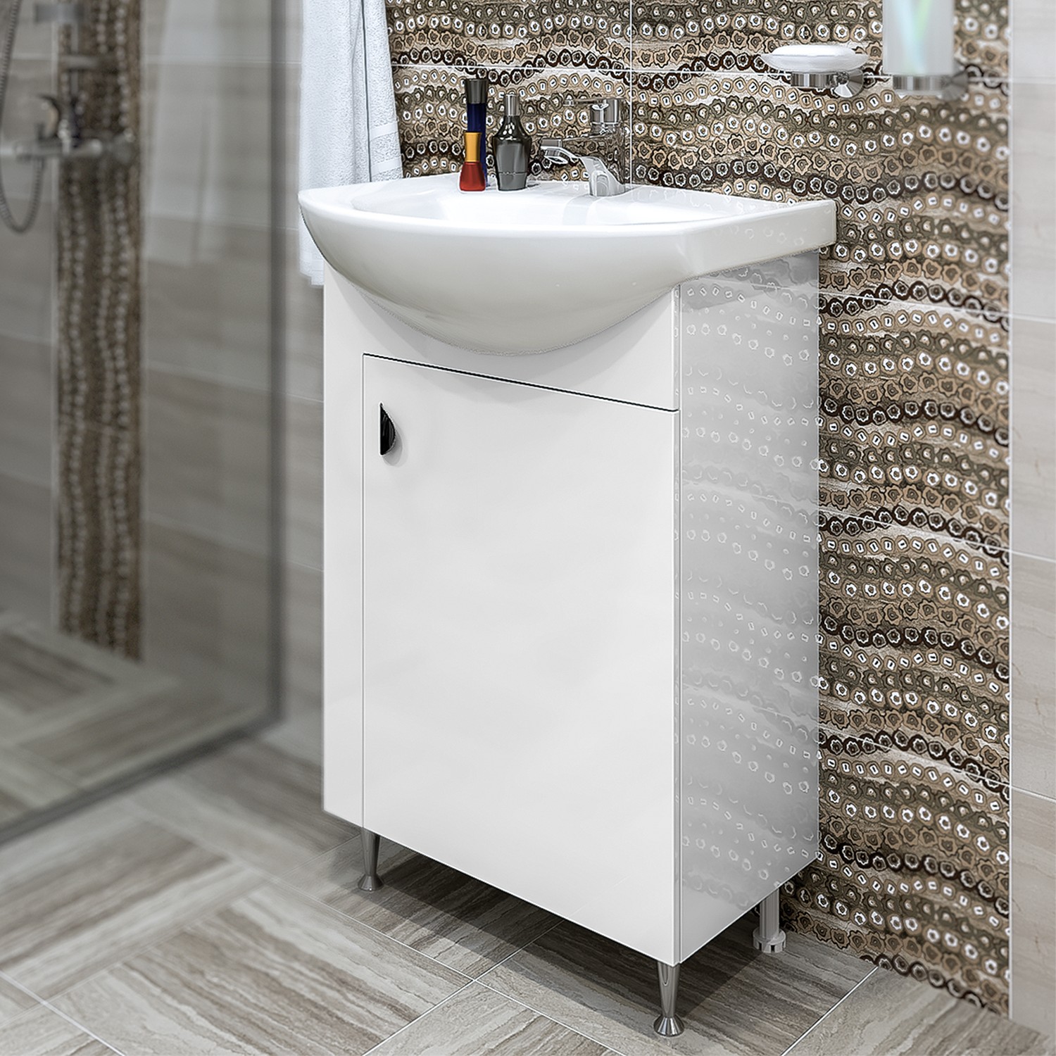 Стилен водоустойчив шкаф за баня с една врата и плавно затваряне.