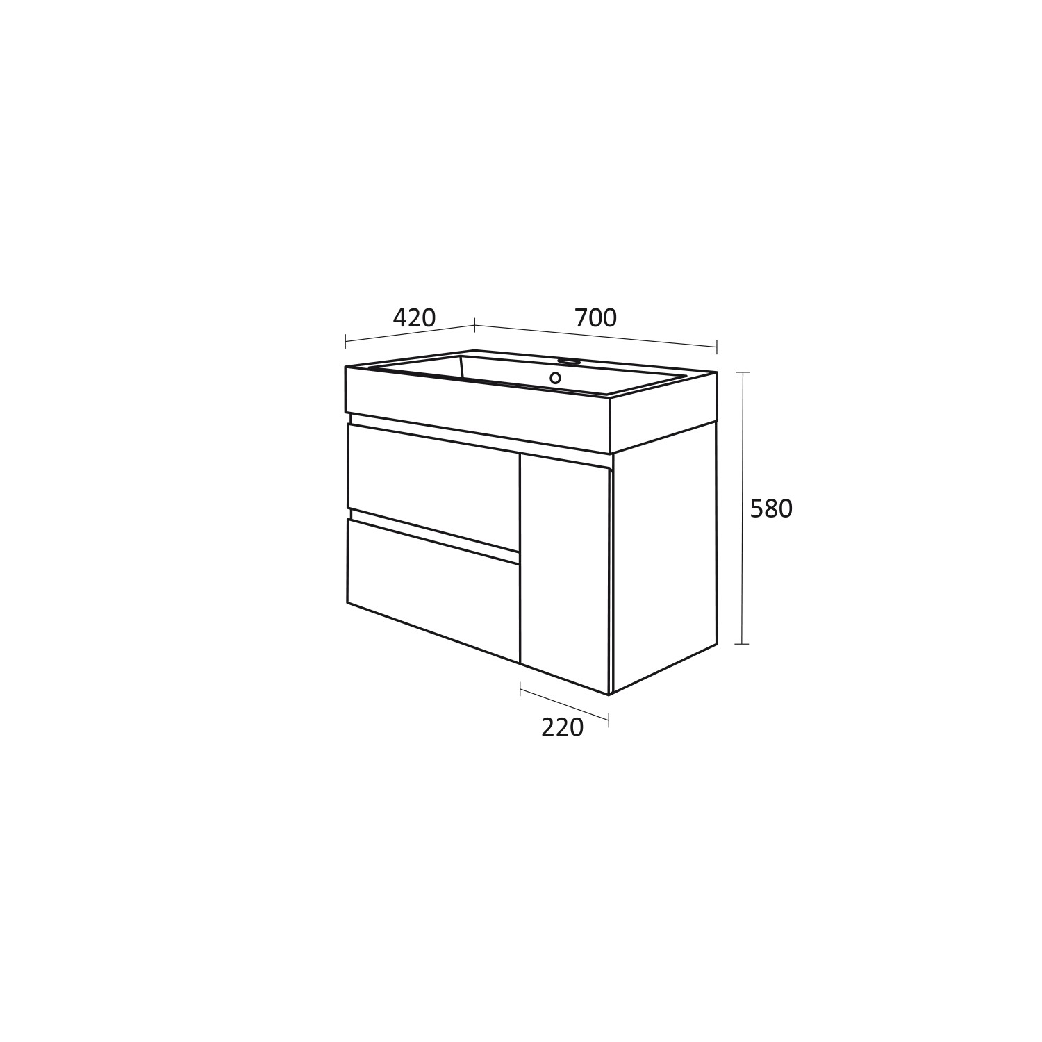 - Размери в мм: Ш – 700 / В – 580 / Д – 420