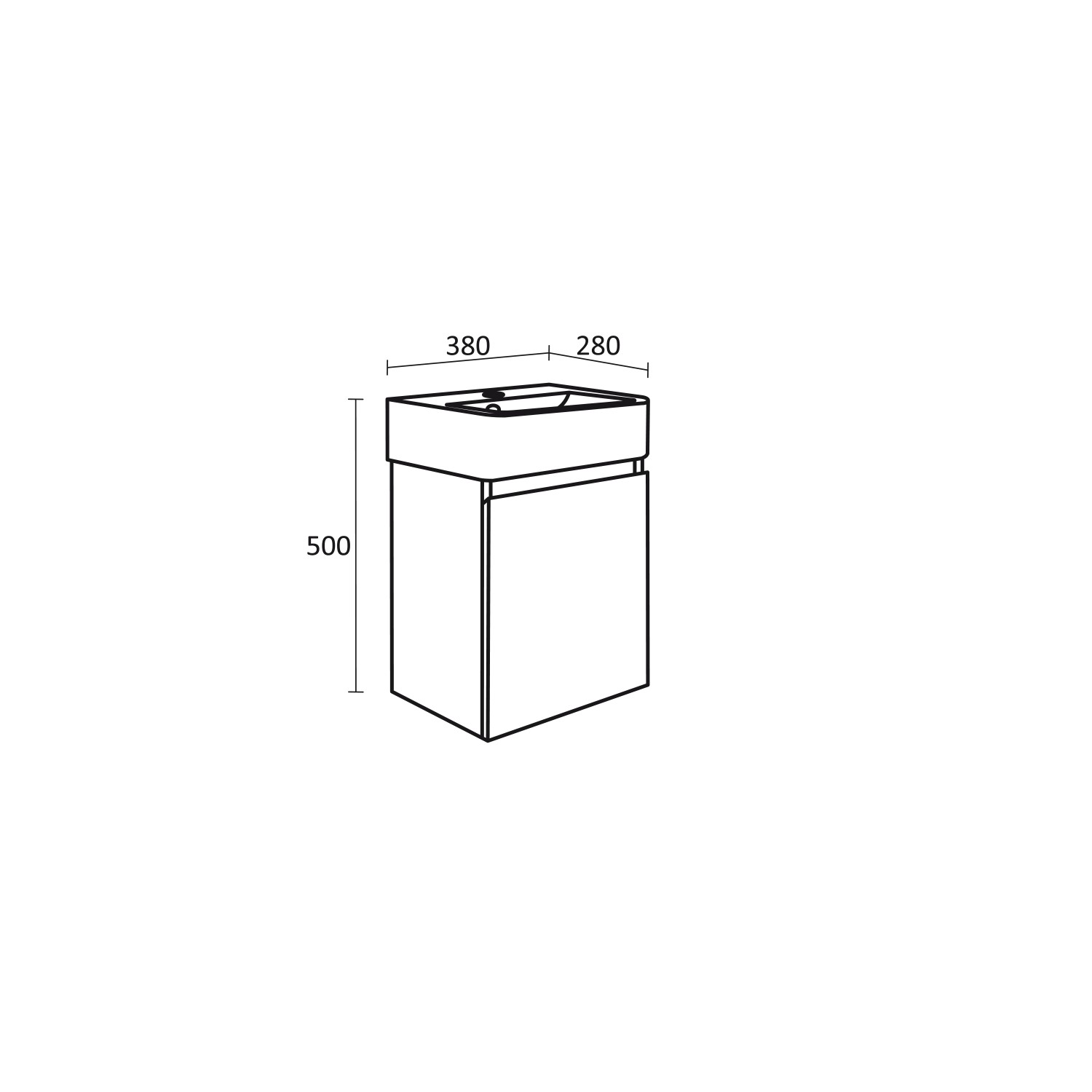 - Размери в мм: Ш – 380 / В – 500 / Д – 280