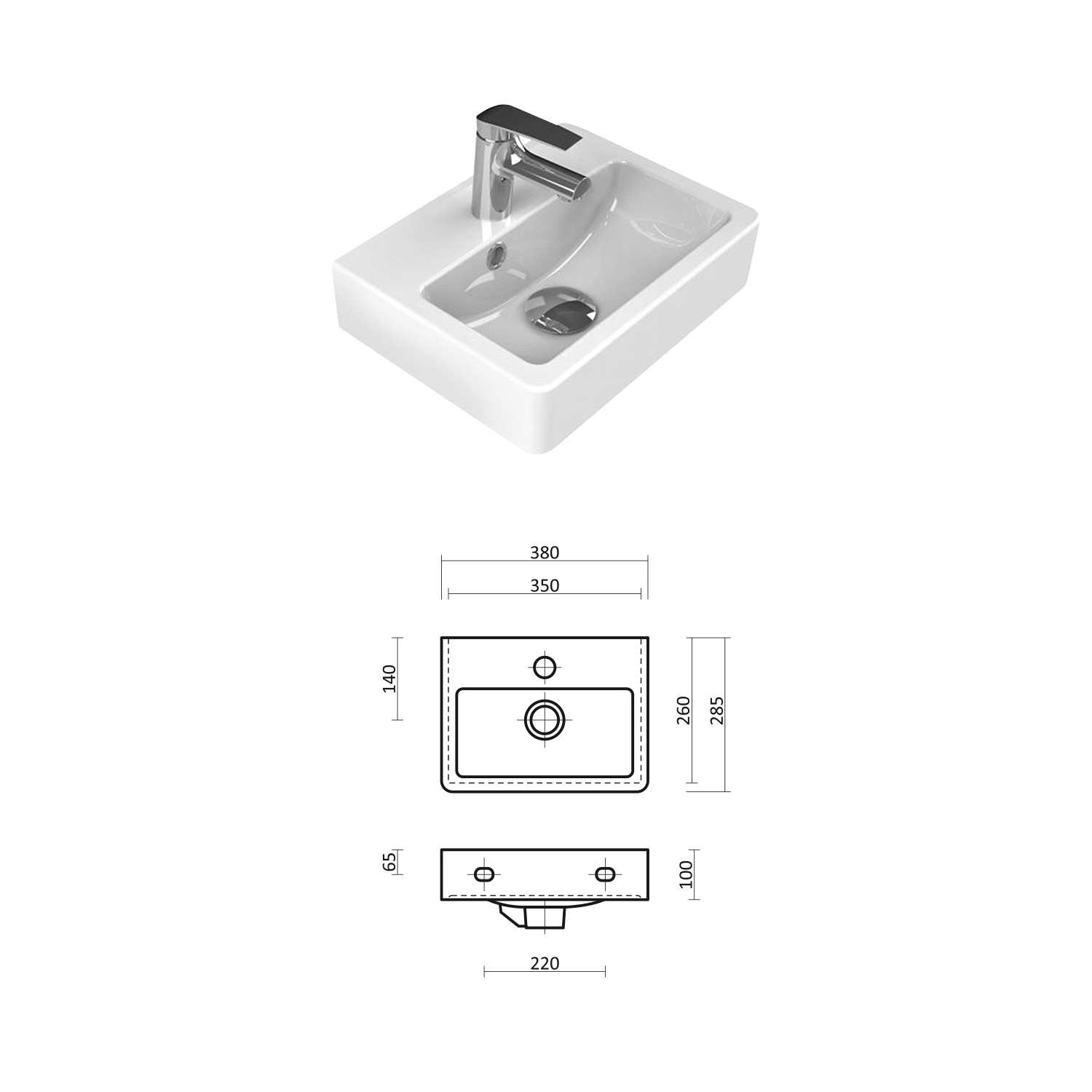 - Размери в мм: Ш – 380 / В – 850 / Д – 285