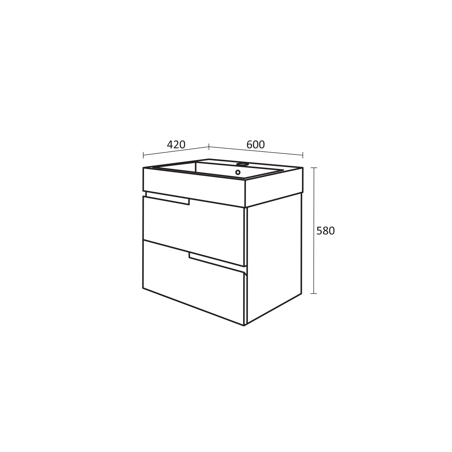 - Размери в мм: Ш – 600 / В – 580 / Д – 420