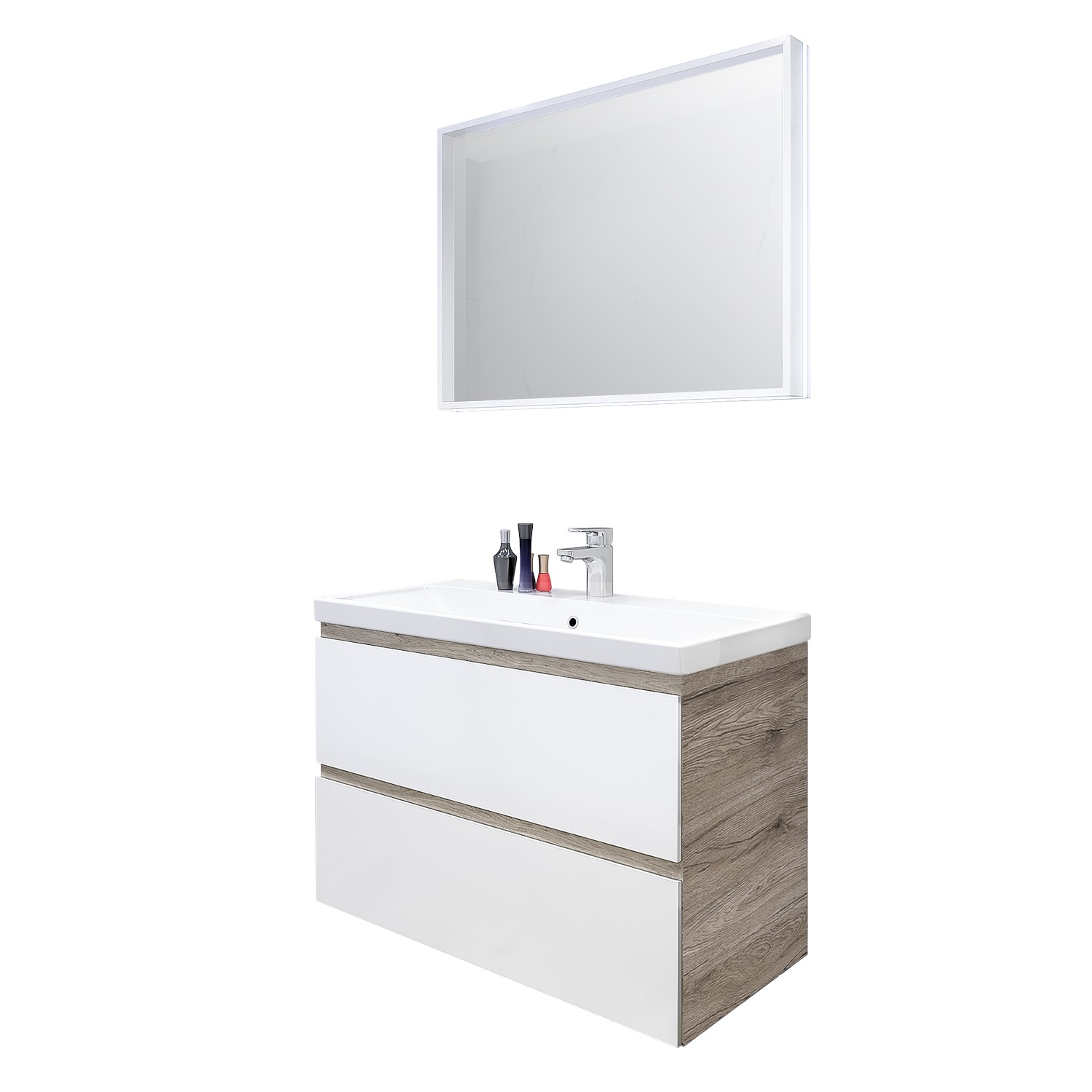 Шкафът се доставя сглобен и готов за монтаж с всички необходими крепежни елементи. Поради големината и тежестта, мивката е опакована отделно.