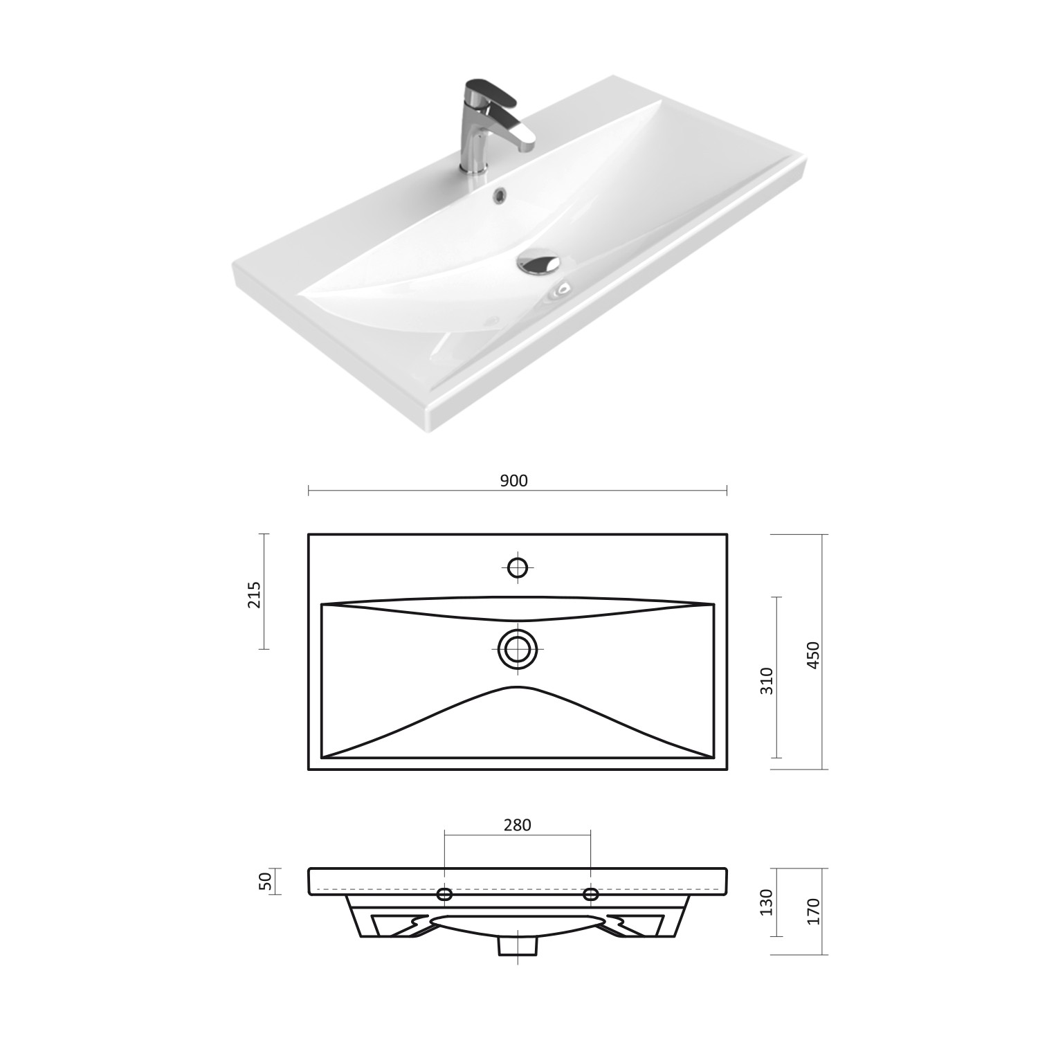 - Размери в мм: Ш – 900 / В – 650 / Д – 80