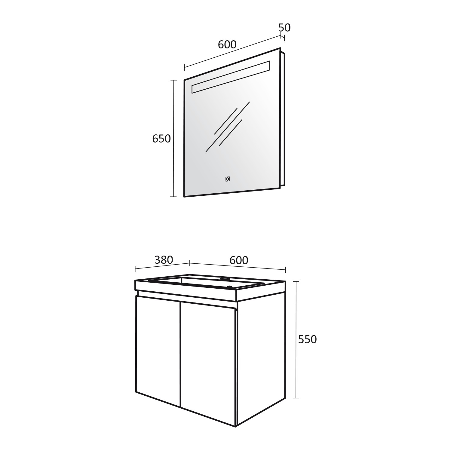 • Размери в мм: Ш – 600 / В – 550 / Д – 380