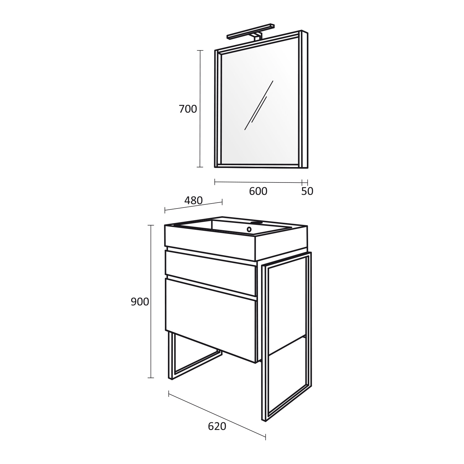 - Размери в мм: Ш – 620 / В – 900 / Д – 480