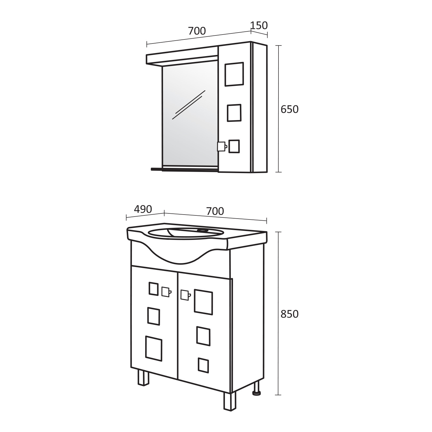 - Размери в мм: Ш – 700 / В – 650 / Д – 150