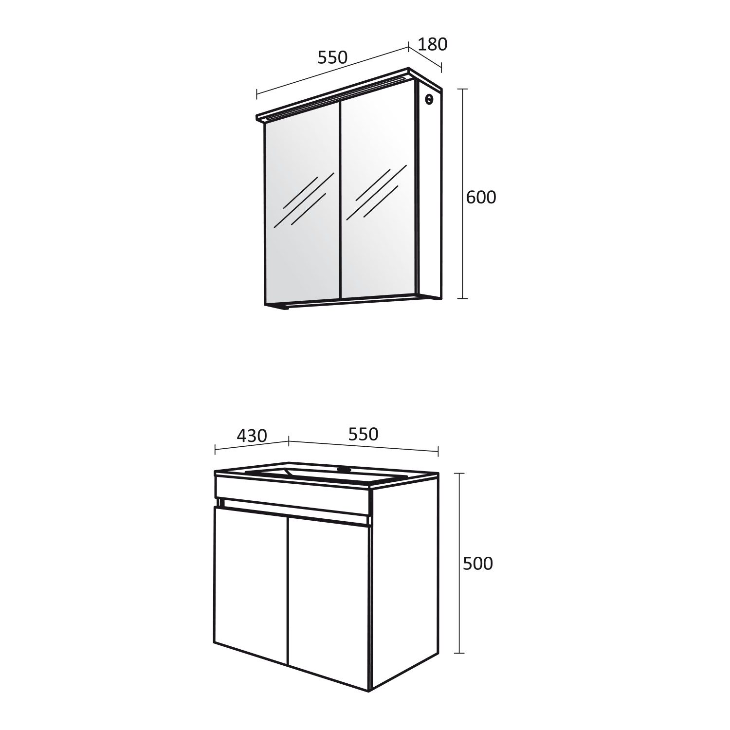 - Размери в мм: Ш – 550 / В – 600 / Д – 180