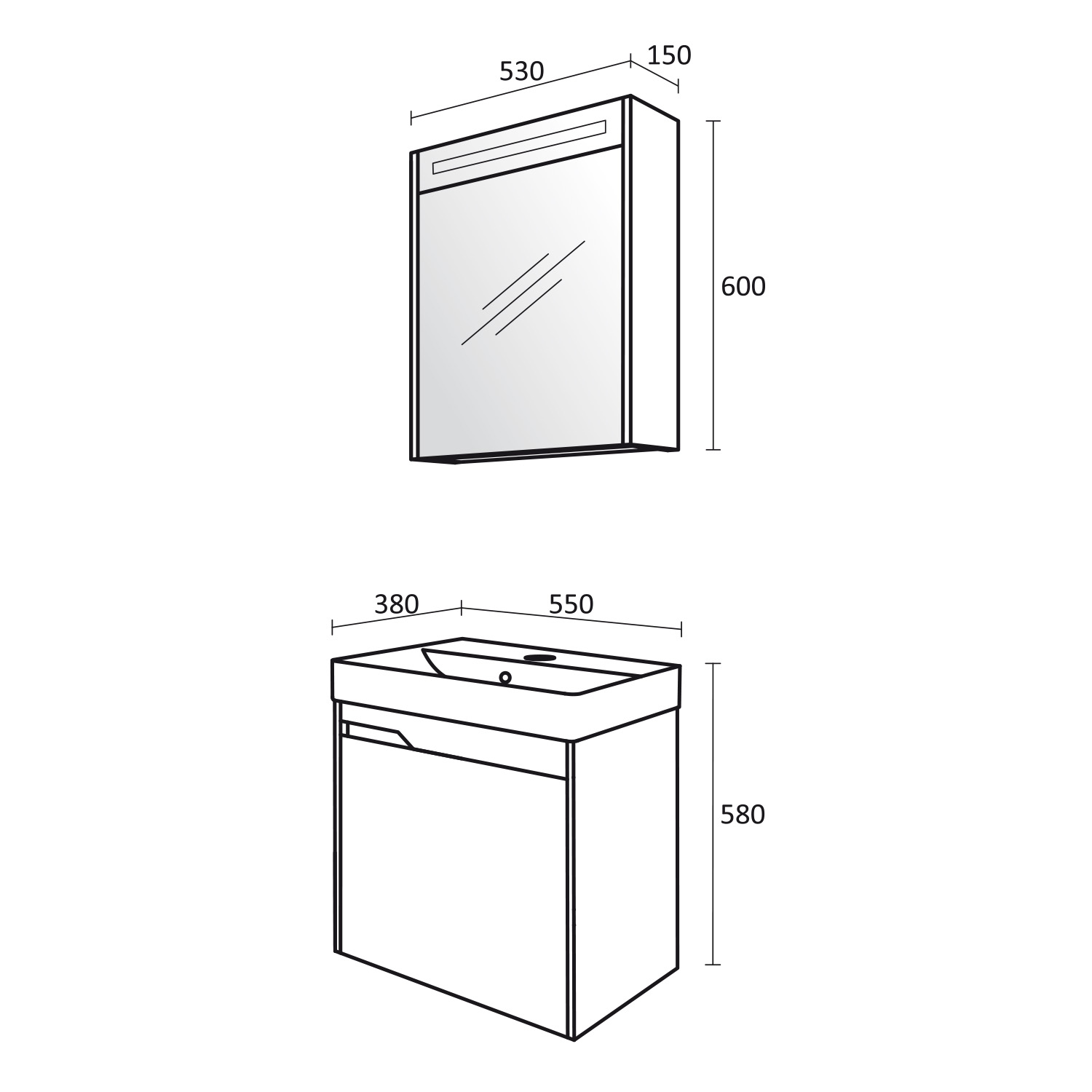 - Размери в мм: Ш – 530 / В – 600 / Д – 150