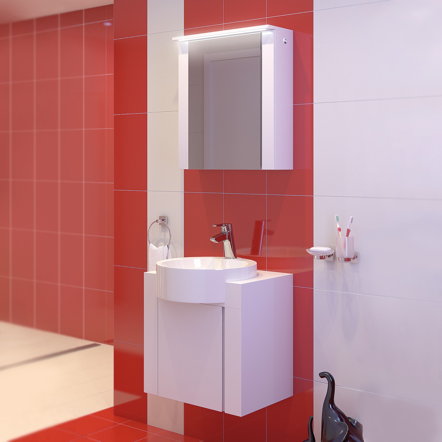 Добавете стил във вашата баня с този компактен и удобен водоустойчив шкаф.