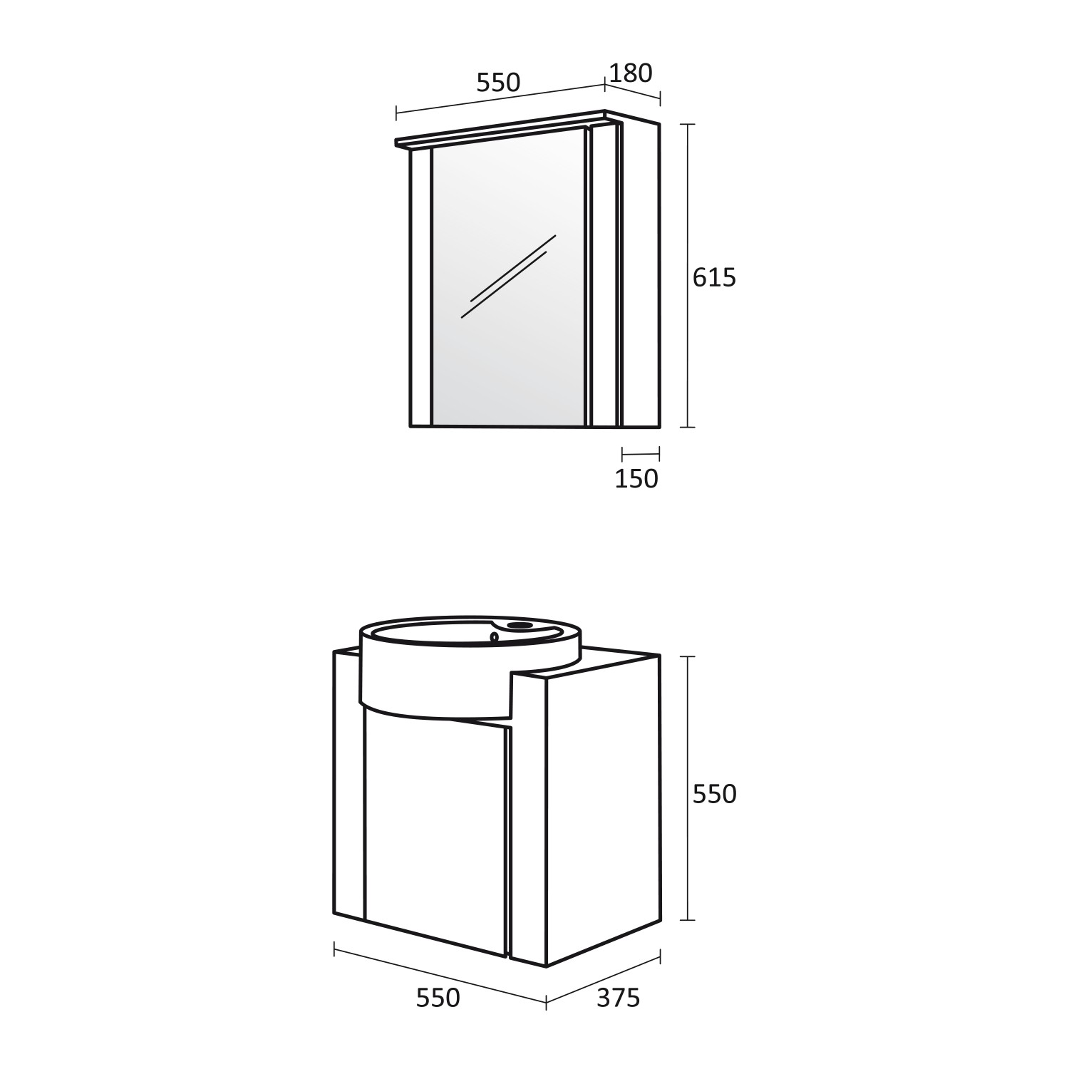 • Размери в мм: Ш – 550 / В – 615 / Д – 180