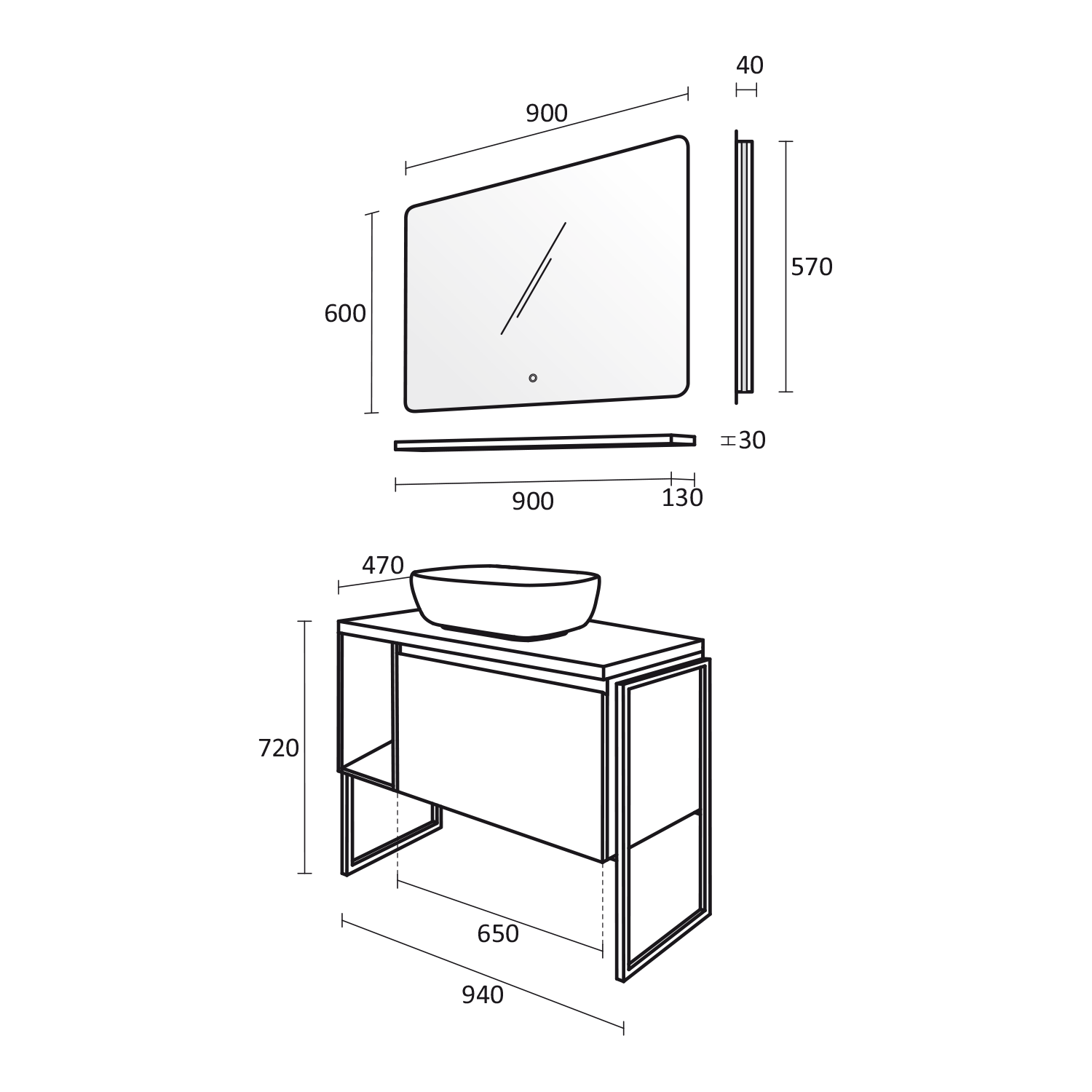 • Размери в мм: Ш – 900 / В – 600 / Д – 40
