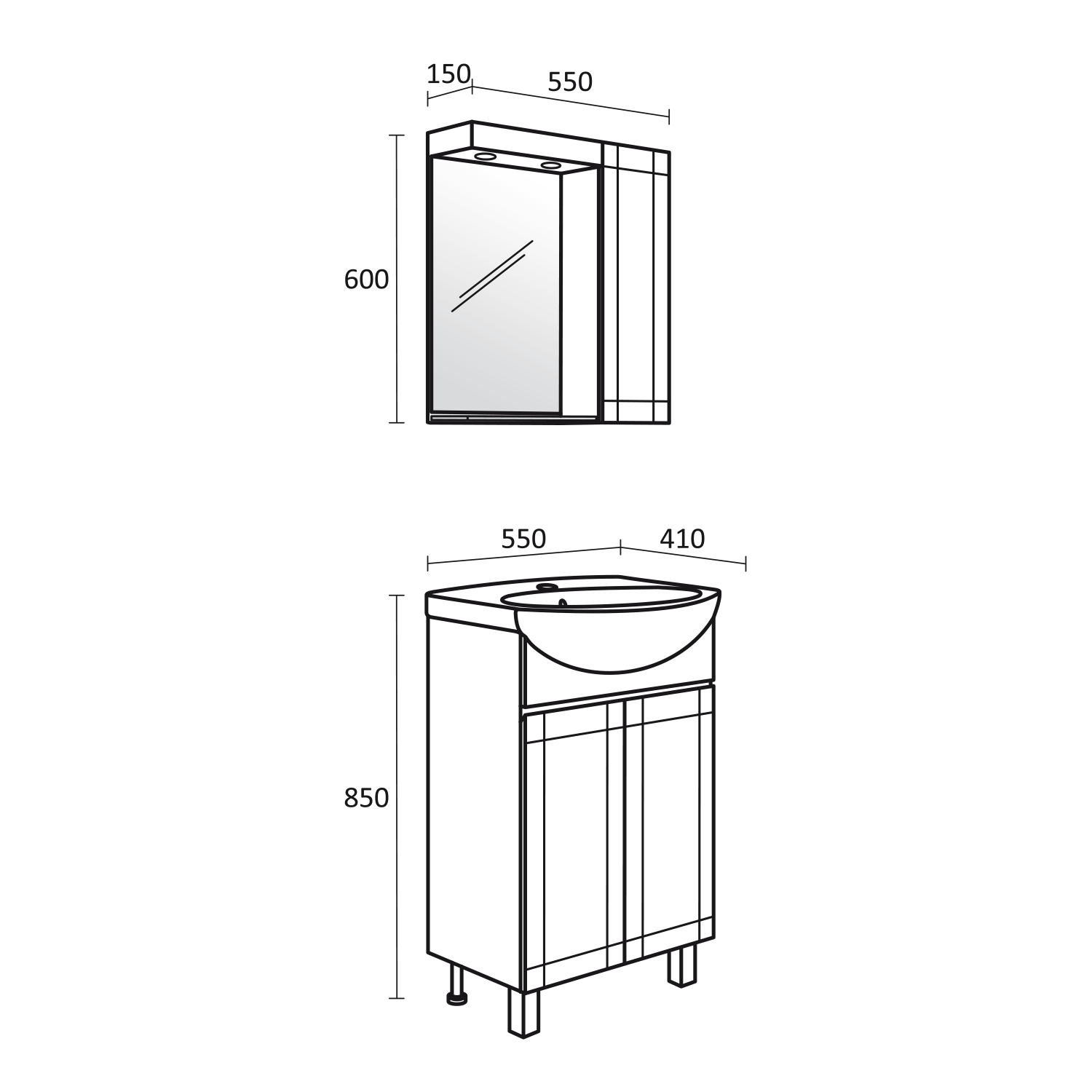 • Размери в мм: Ш – 550 / В – 600 / Д – 150