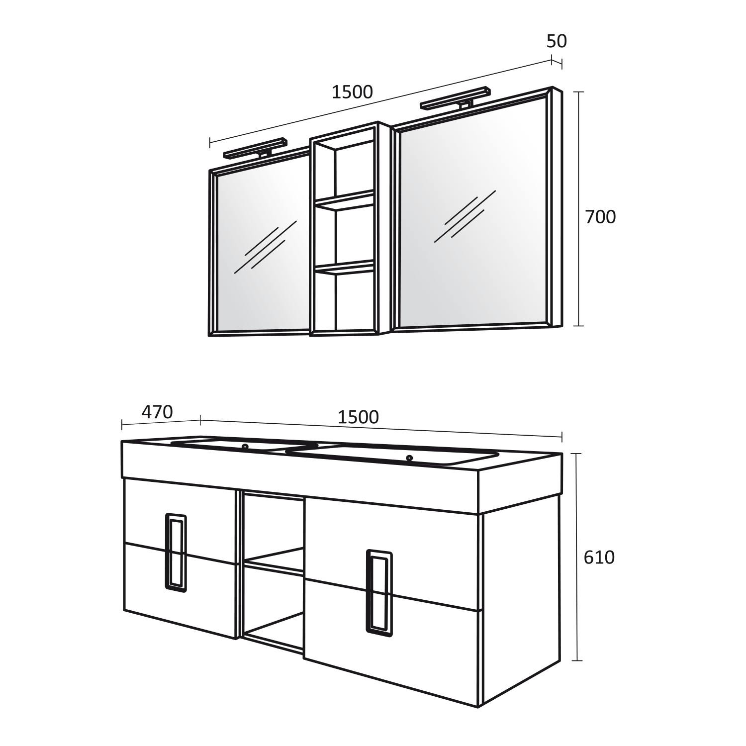 - Размери в мм: Ш – 1500 / В – 610 / Д – 470