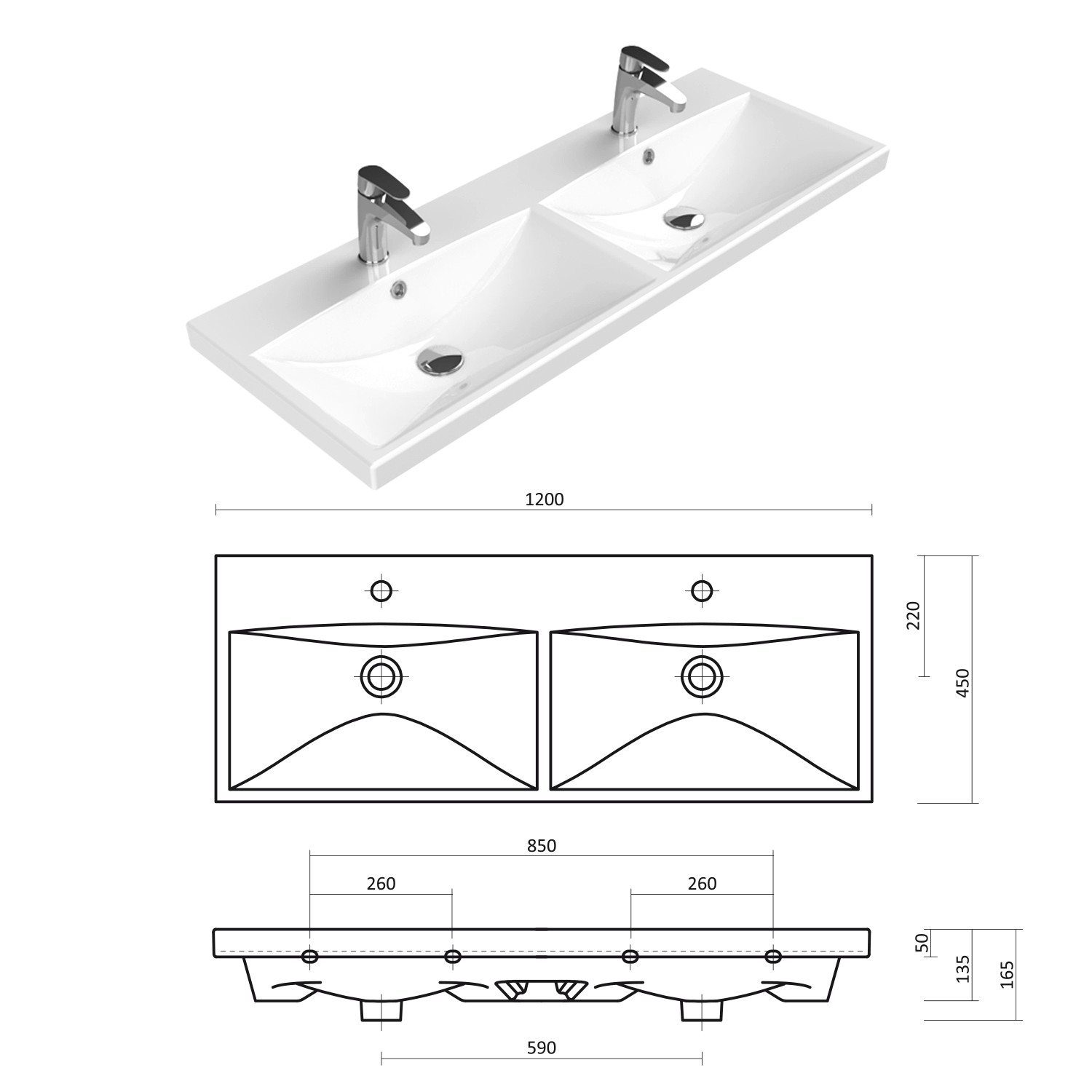 - Размери в мм: Ш – 1200 / В – 600 / Д – 150