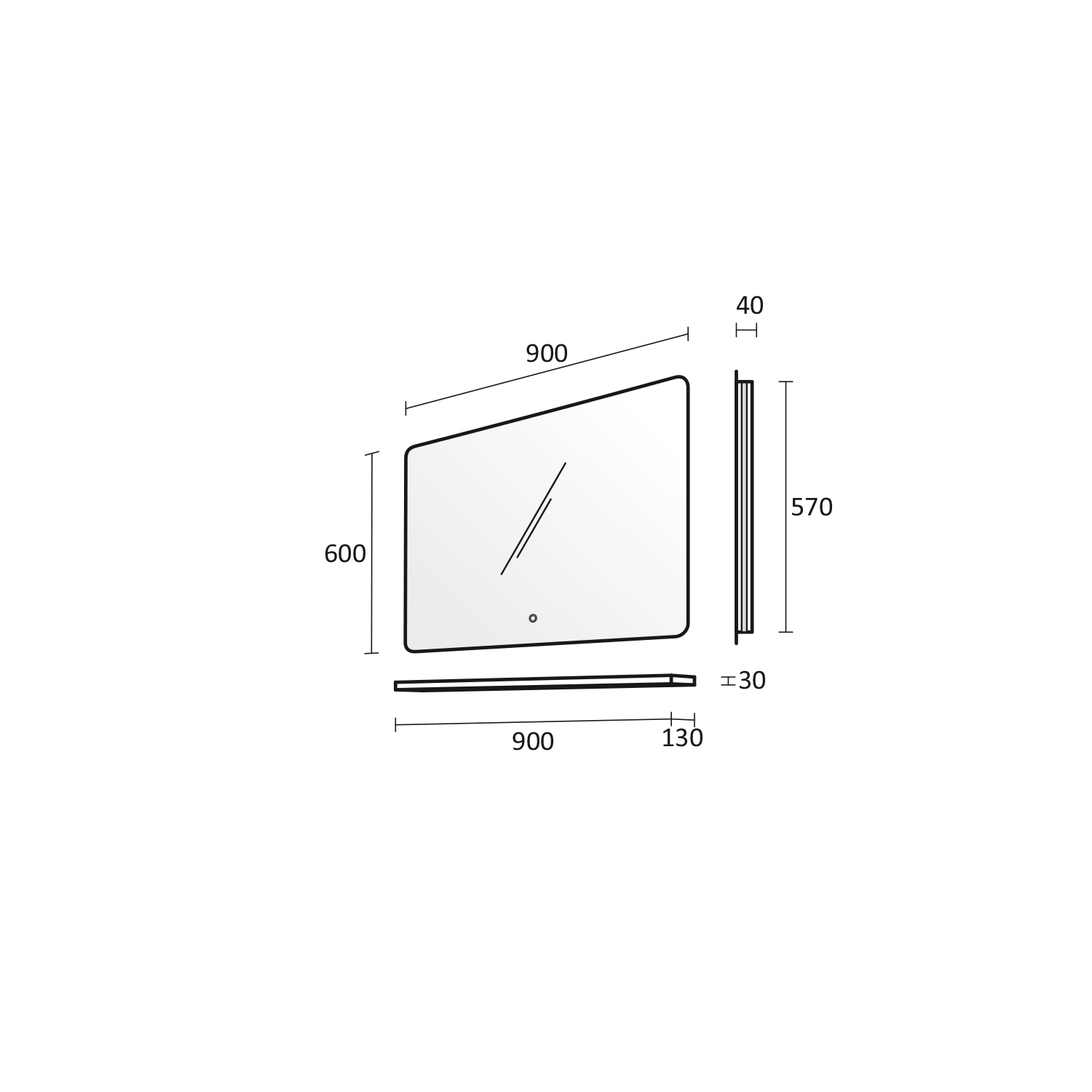 - Размери в мм: Ш – 900 / В – 600 / Д – 40