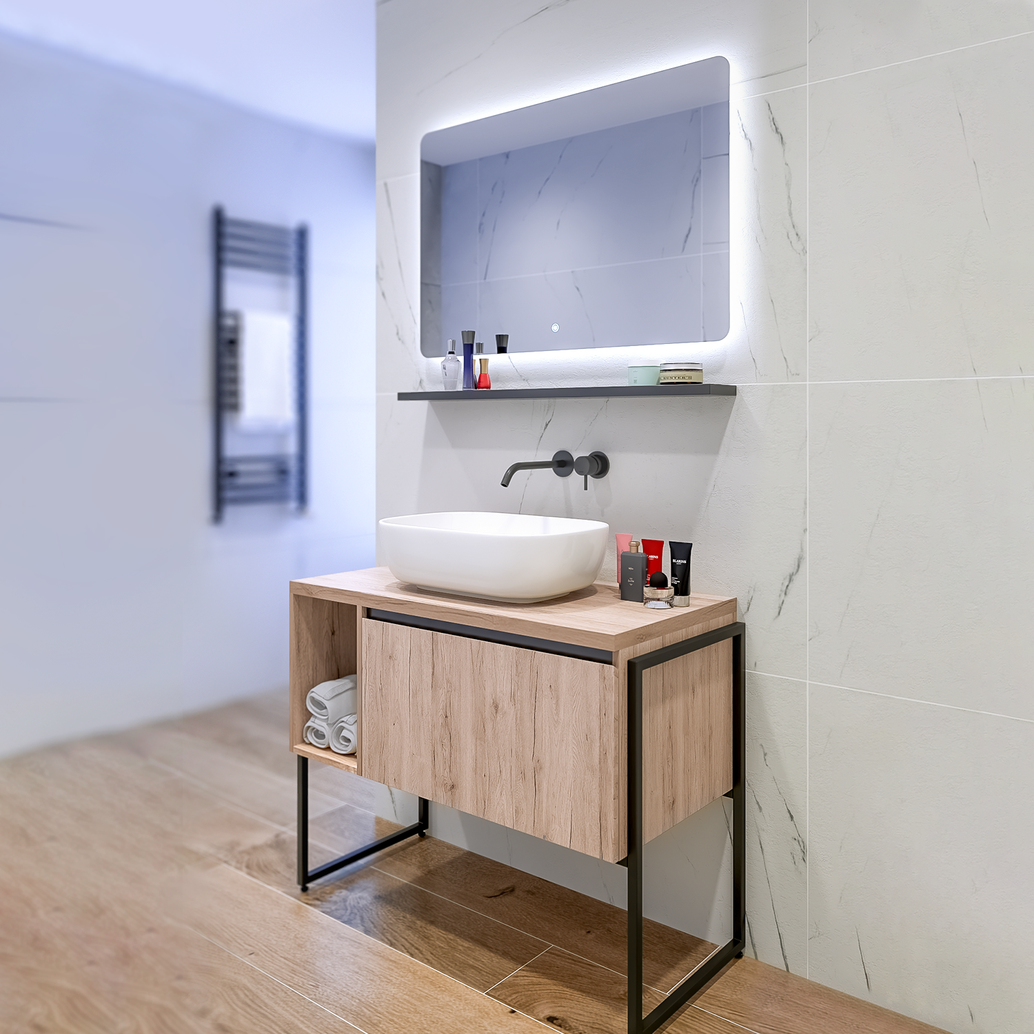* Възможност за добавяне на PVC рафт в цвят черен мат с държачи скрит монтаж.
