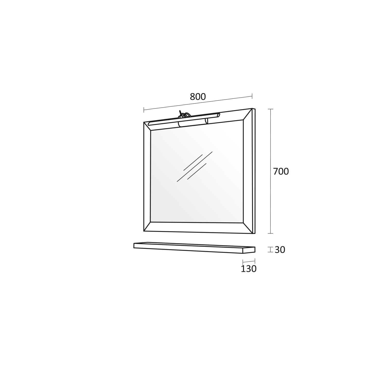 - Размери в мм: Ш – 800 / В – 700 / Д – 130