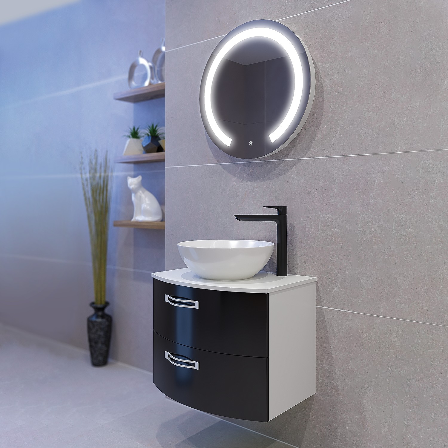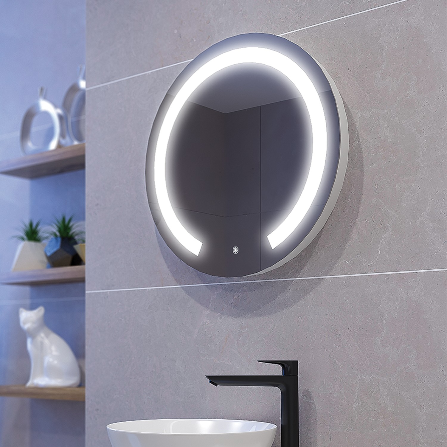 Изключително стилно и модерно кръгло огледало за баня, изработено върху водоустойчива PVC основа, с LED осветление и Touch бутон.